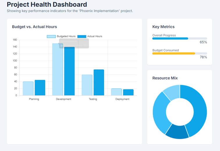 The true power of Project Operations lies in the tight, native integration of these three pillars. This creates a powerful, real-time feedback loop that is impossible to achieve with a patchwork of disconnected systems. The Project Manager creates a task in the WBS (the plan). A resource is then booked via the Schedule Board to work on that task (the commitment). Finally, the team member submits a time entry against that specific task (the actual effort). This «Actual» immediately updates the project’s financial records and progress tracking dashboards. The Project Manager can see, in real-time, the variance between planned effort and actual effort, or budgeted cost versus actual cost. This instantaneous data allows for proactive decision-making. If a task is consuming more effort than anticipated, the PM can see it immediately and take corrective action,adjusting the plan, managing client expectations, or reallocating resources to mitigate risk. In a traditional environment of spreadsheets and separate project tools, this feedback loop could take days or weeks, by which time a project might already be significantly off track. This integrated operational engine is the core of what makes Project Operations so effective.