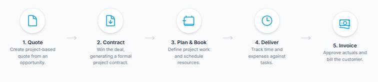 5. Seamless Delivery: Once the contract is in place, the work is planned in a new project, resources are scheduled, and all time and expenses are meticulously tracked against the project, ensuring accurate billing and profitability analysis.