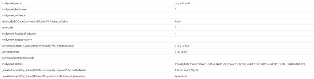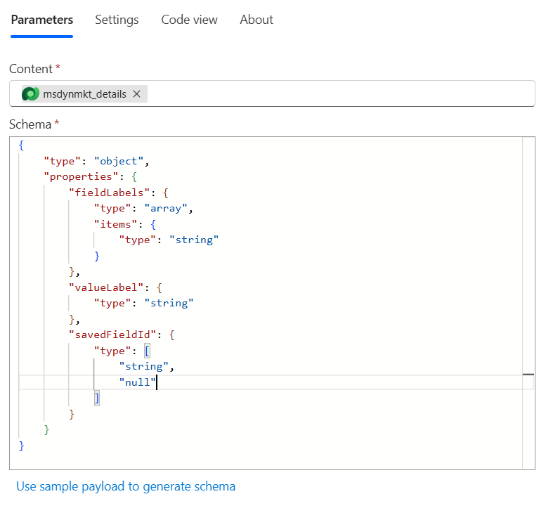 This will give us a JSON in the field msdynmkt_details which we are going to parse and for easy error handling and to be able to view what happens I’m also including three compose actions for you to be able to view the data for each run in a simple way.