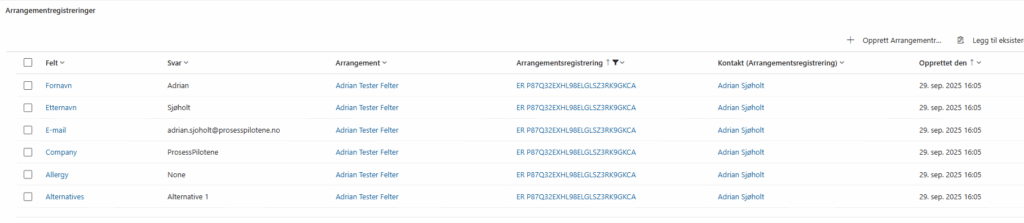 You now have a simple view on the event with all registration details—one row per field. This makes filtering and exporting easy.