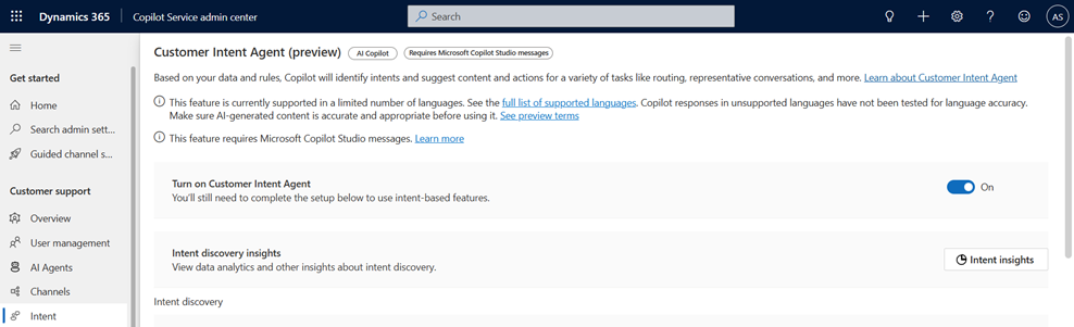 - Activate the Customer Intent Agent